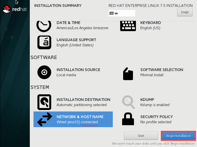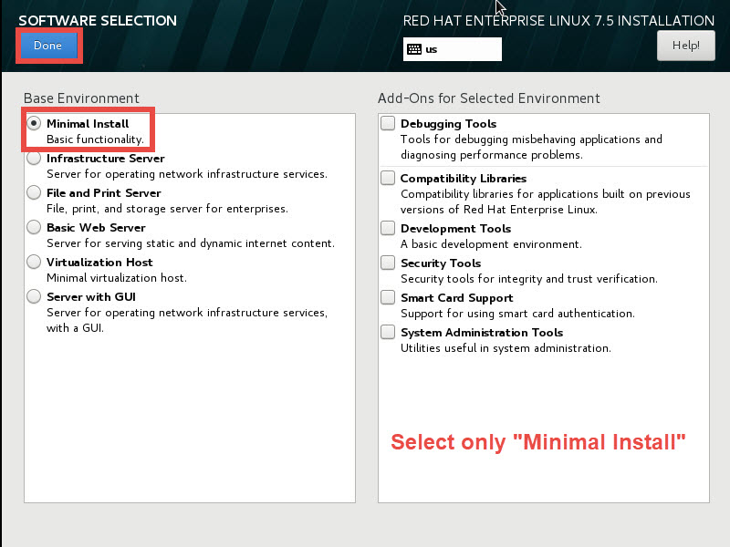 Perform RHEL/CentOS installation from ISO with "Minimal Install" software option only