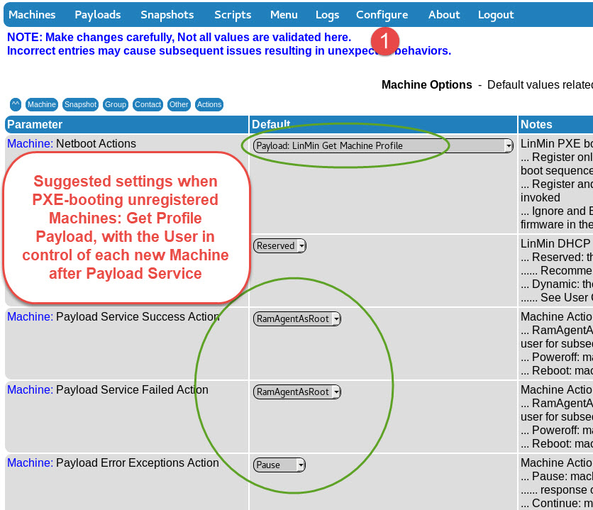 Suggested settings when registering Machines (with unknown properties) by PXE-booting: