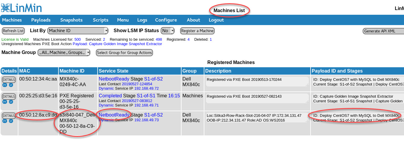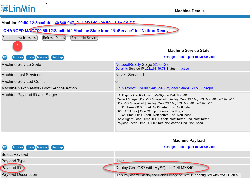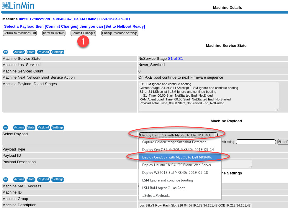 Now that the Payload has been selected and you have clicked Commit Changes, set the Machine to Netboot Ready: