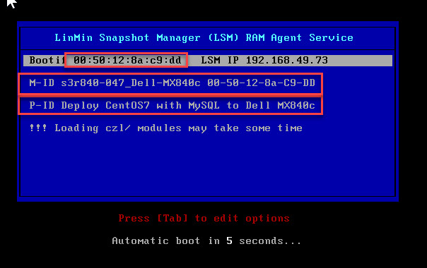 After powering on the Machine, the LSM splash screen appears showing MAC address, Machine ID, Payload ID and more...