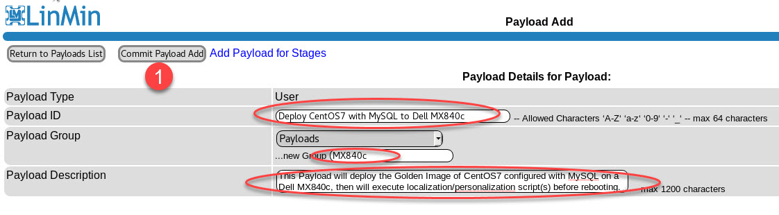 Enter the Payload ID, and optionally change the default Group name and add a Description: