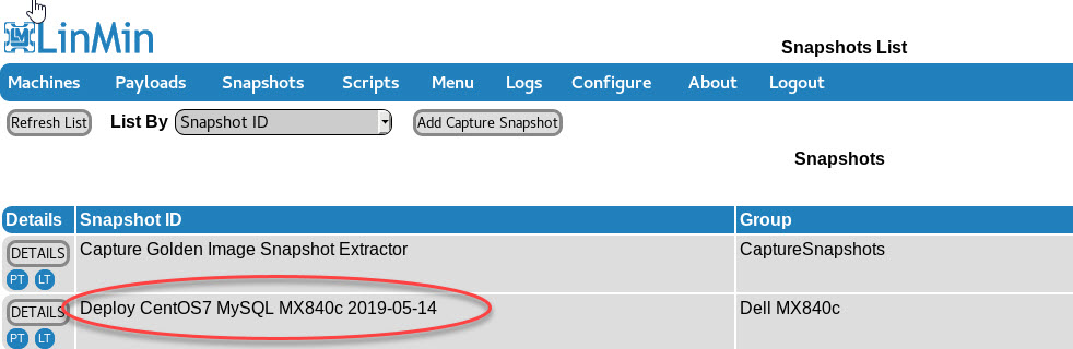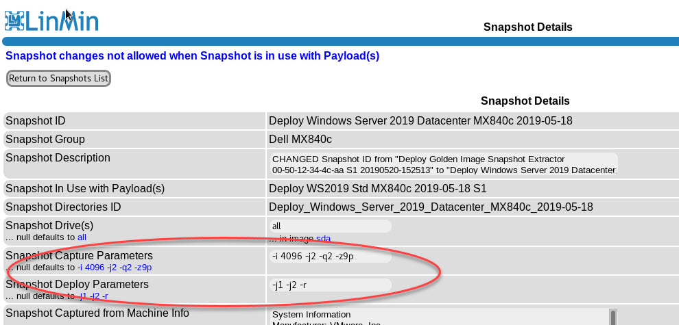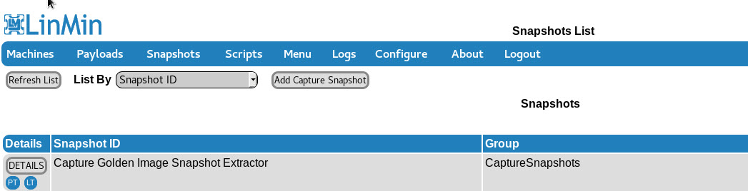 •Deploy Snapshots are the actual disk images captured by a Capture Snapshot, based on User-selectable Clonezilla parameters, to be deployed on the target Machine by the LSM RAM Agent.