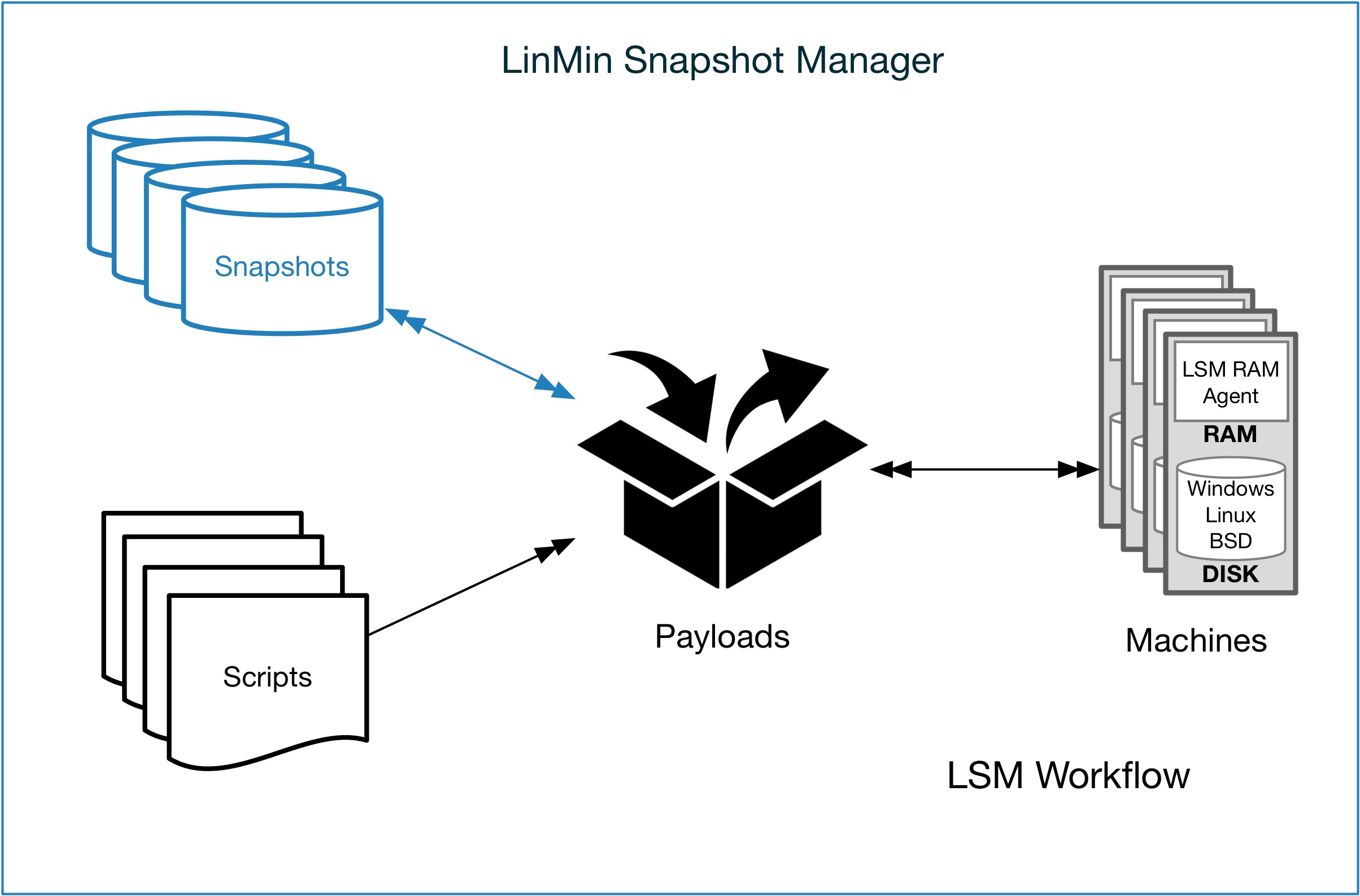 Snapshots are disk images that can be assigned as Stages in a Payload. Payloads, in turn, are processed by the LSM RAM Agent on the Machine being serviced.