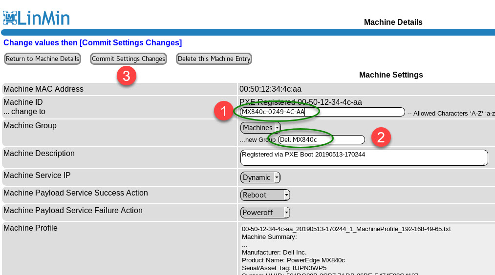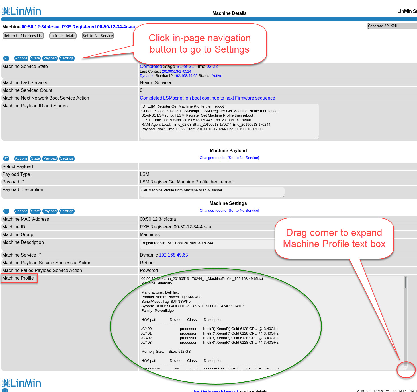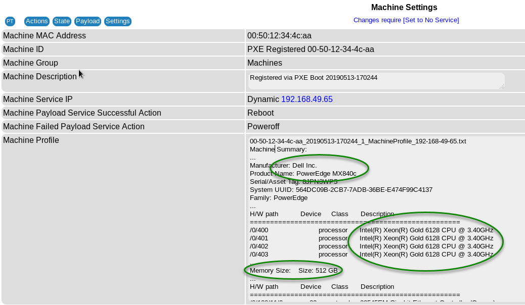 MachineProfile: the captured hardware configuration (profile) that is displayed on the Machine Details > Machine Settings (helpful for User scripting of Machine inventory)