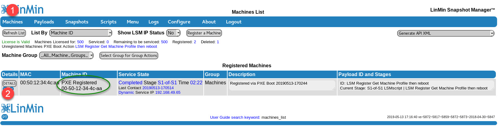 On the Machines page, you will see the newly registered Machine with an automatically-generated Machine ID containing the Machine's MAC address. Click the Machine's Details button: