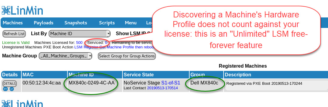 The Machines page now shows your new, renamed Machine. Obtaining the Machine hardware profile does not require a valid LSM license:
