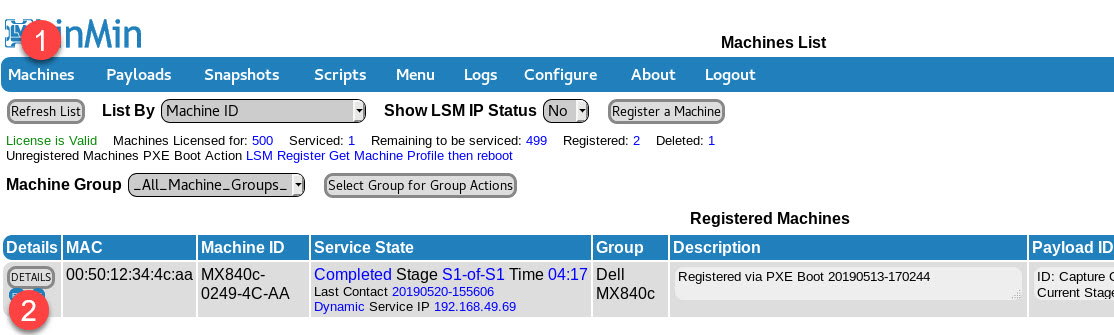 The Machine will now be serviced as soon as it PXE boots. Return to the Machines List: