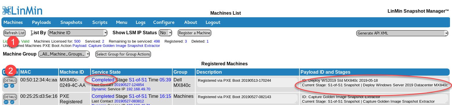 Refresh the Machines List page and note the "Completed" Machine State. Click Details: